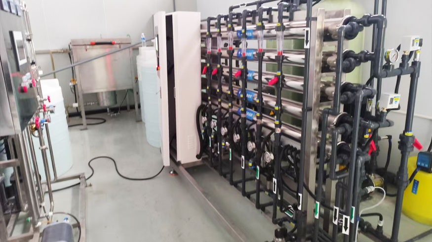 設備可接入國家自來水標準的水為源水,并增加石英砂過濾器、活性炭過濾器、鈉離子軟化器、精密過濾器等四級預處理,另有RO反滲透主機系統(tǒng)和EDI離子交換技術,有效的延長了設備的使用壽命,降低了人工的操作復雜度和維護工作量等。系統(tǒng)水箱處設有液位控制系統(tǒng)、水泵處設有壓力保護裝置并配備在線水質監(jiān)測控制儀器,讓設備的自動化得到極大的提高。設備的選材方面,公司可按照客戶對于水質的要求進行特殊定制,既能保證用水水質達標,同時降低了所需成本。