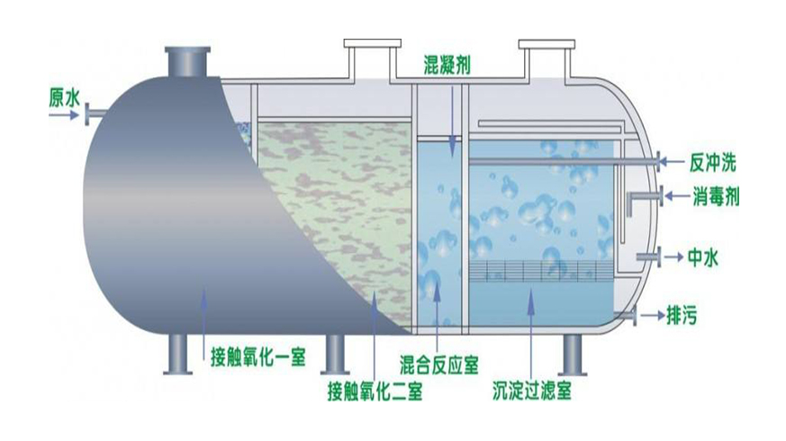 5.該污水處理設備除了使用常規(guī)鼓風機消音措施外,還在鼓風房內壁安裝了新型吸音材料,可以有效的降低設備在使用過程中產(chǎn)生的噪音,減輕噪音危害。