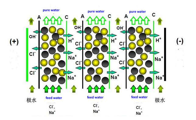3、通過(guò)離子交換膜技術(shù),將各種離子通過(guò)篁流電場(chǎng)的作用完成離子的定向遷移去除,可以大大提升離子去除率;
