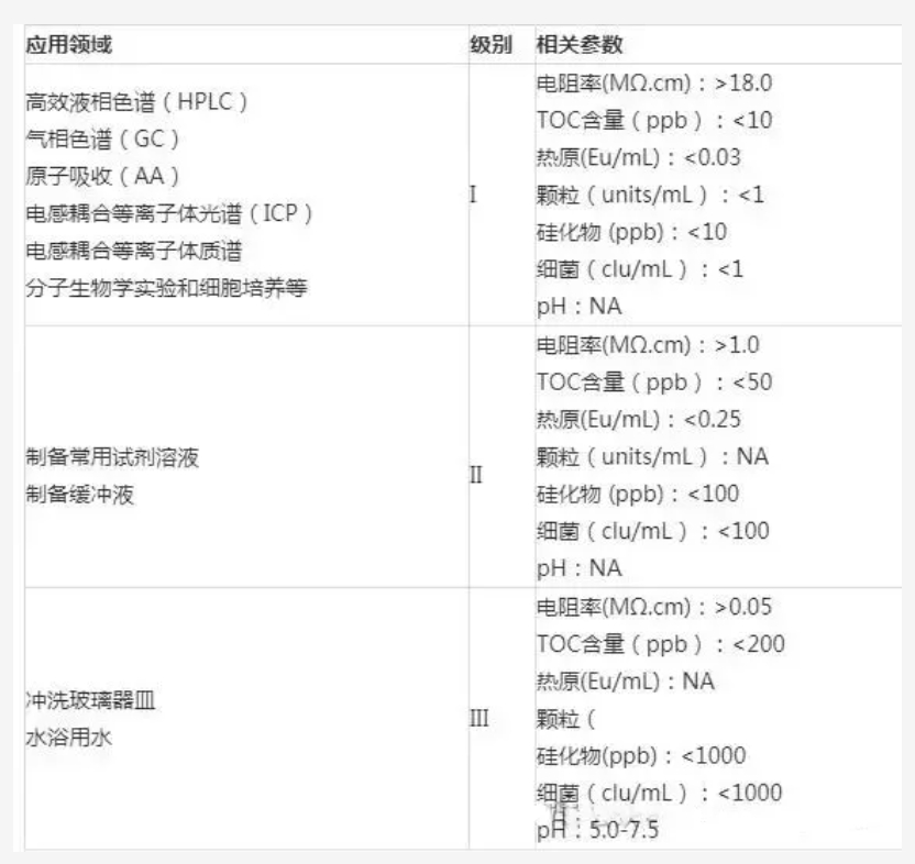 實(shí)驗(yàn)室用水的分類、標(biāo)準(zhǔn)及應(yīng)用領(lǐng)域(收藏)