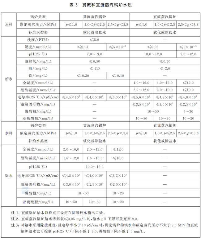 4.1 貫流和直流蒸汽鍋爐給水和鍋水水質(zhì)應(yīng)符合表3的規(guī)定。