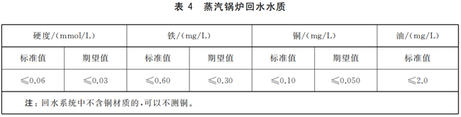 5.1 蒸汽鍋爐回水水質(zhì)宜符合表 4 的規(guī)定。
