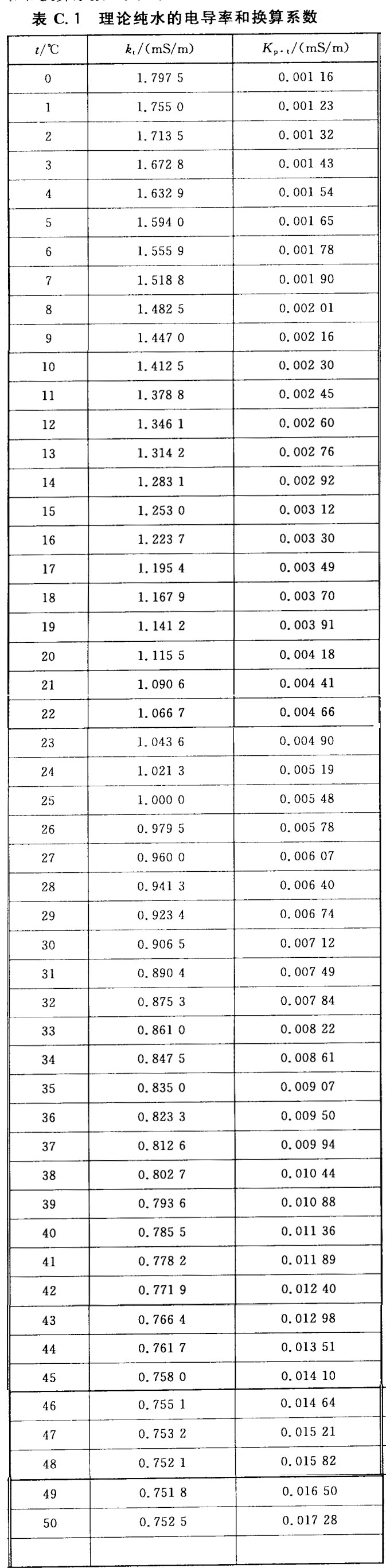 實(shí)驗(yàn)室純水GB/T6682-2008電導(dǎo)率換算公式