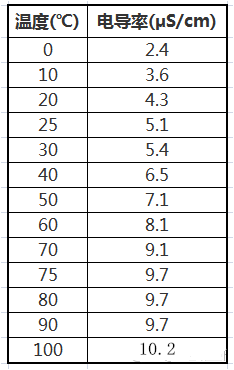 另:純化水溫度與電導(dǎo)率要求表如下: