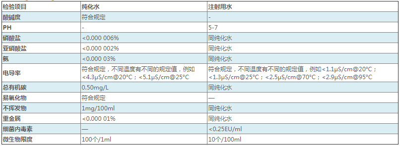 中國藥典純化水以及注射用水標(biāo)準(zhǔn)及檢驗(yàn)項(xiàng)目